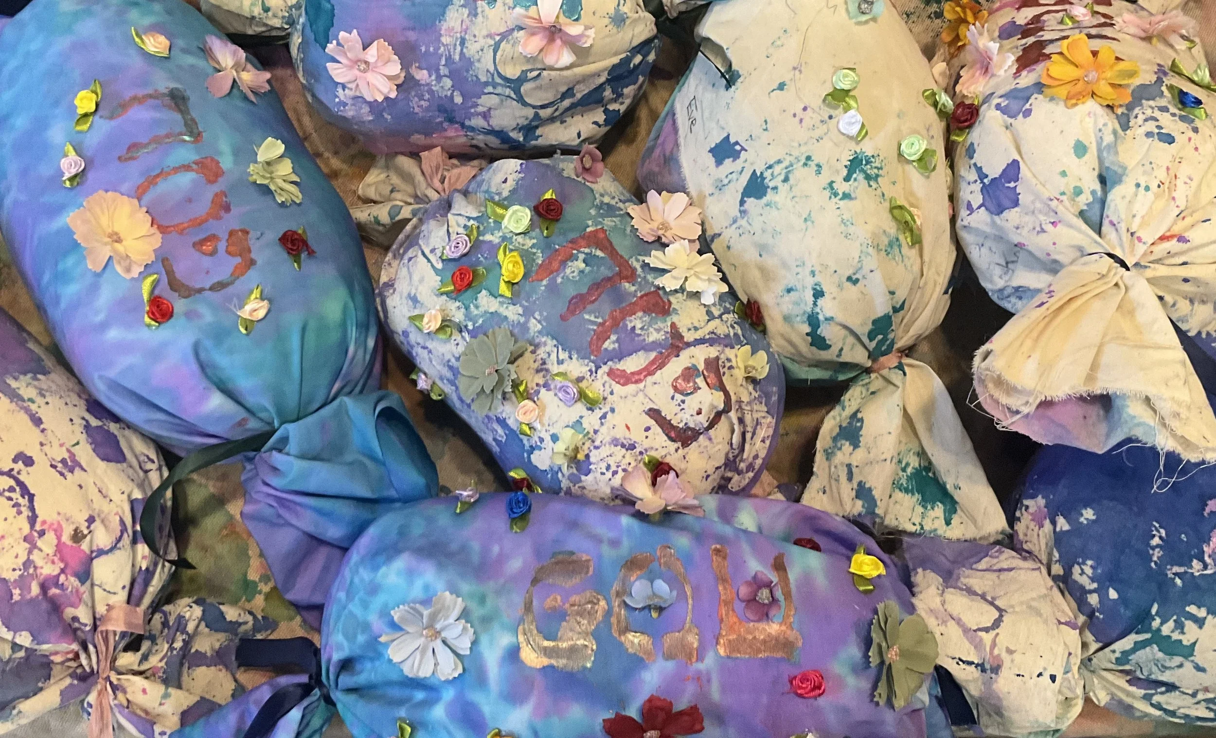 The children selected fabric flowers of various sizes and colors to glue on their pillows. These flowers represent springtime and tie back to the children’s love of nature.